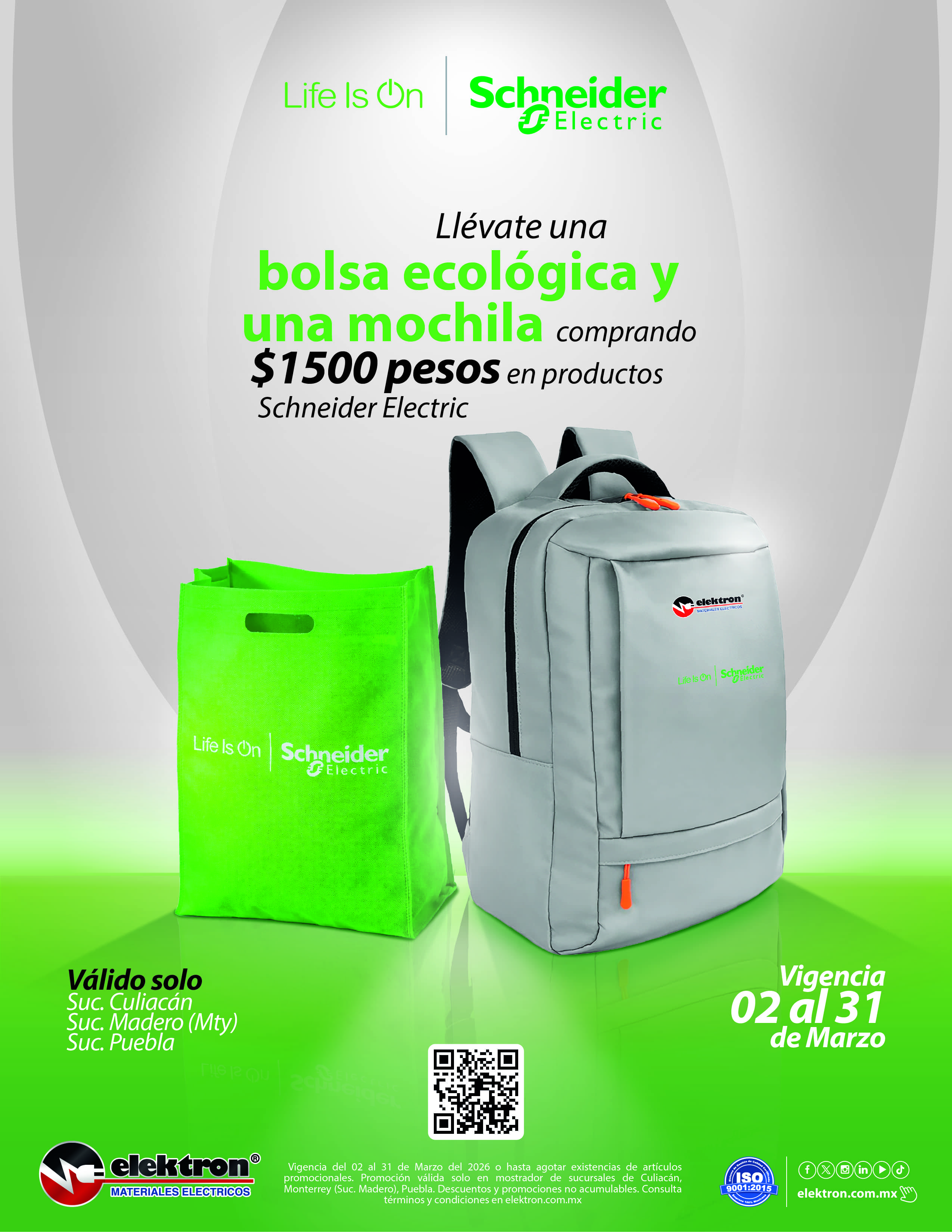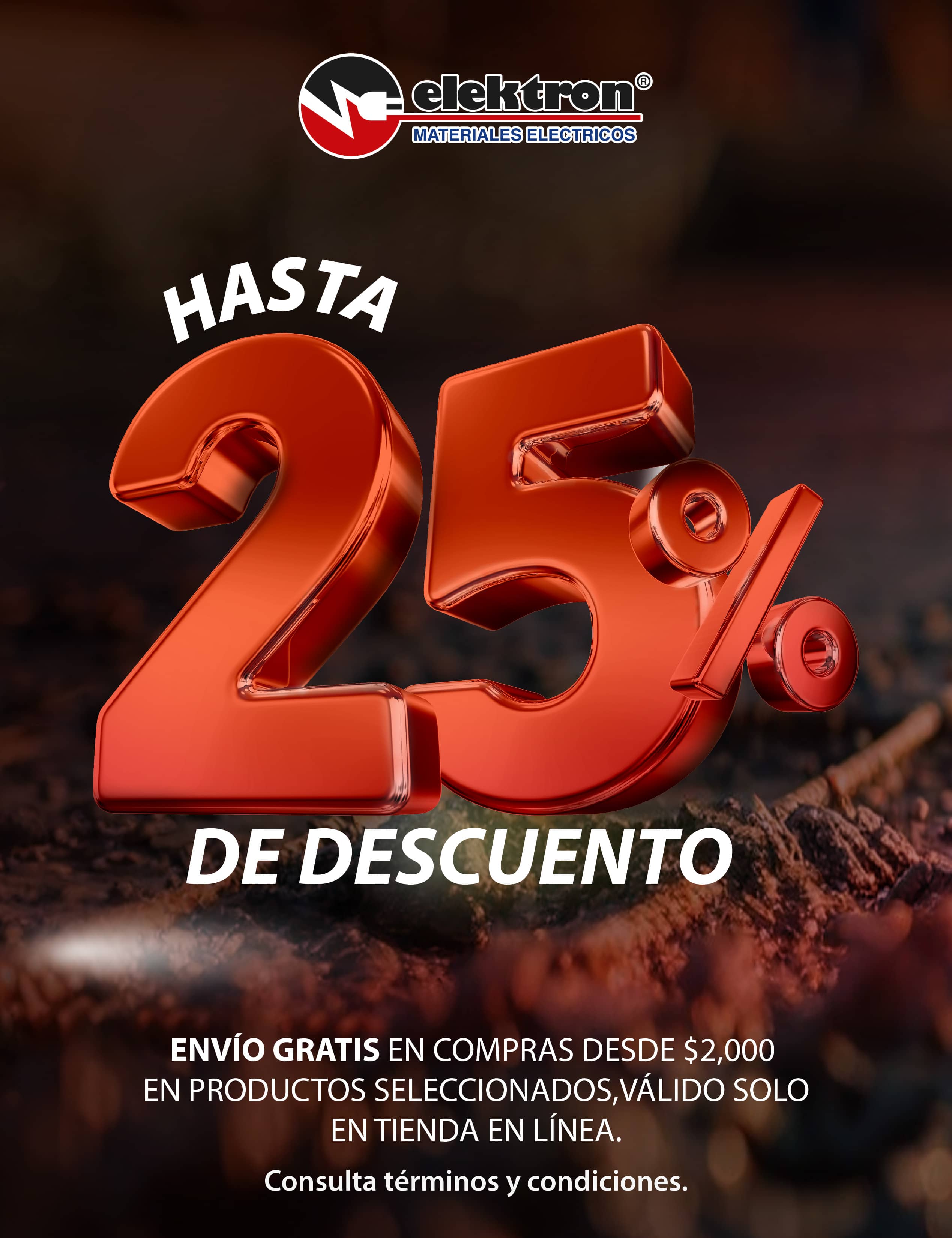 - La promoción es válida únicamente en ventas de mostrador de las tiendas seleccionadas de ELEKTRON materiales eléctricos, sucursal Madero, Culiacán y Puebla.