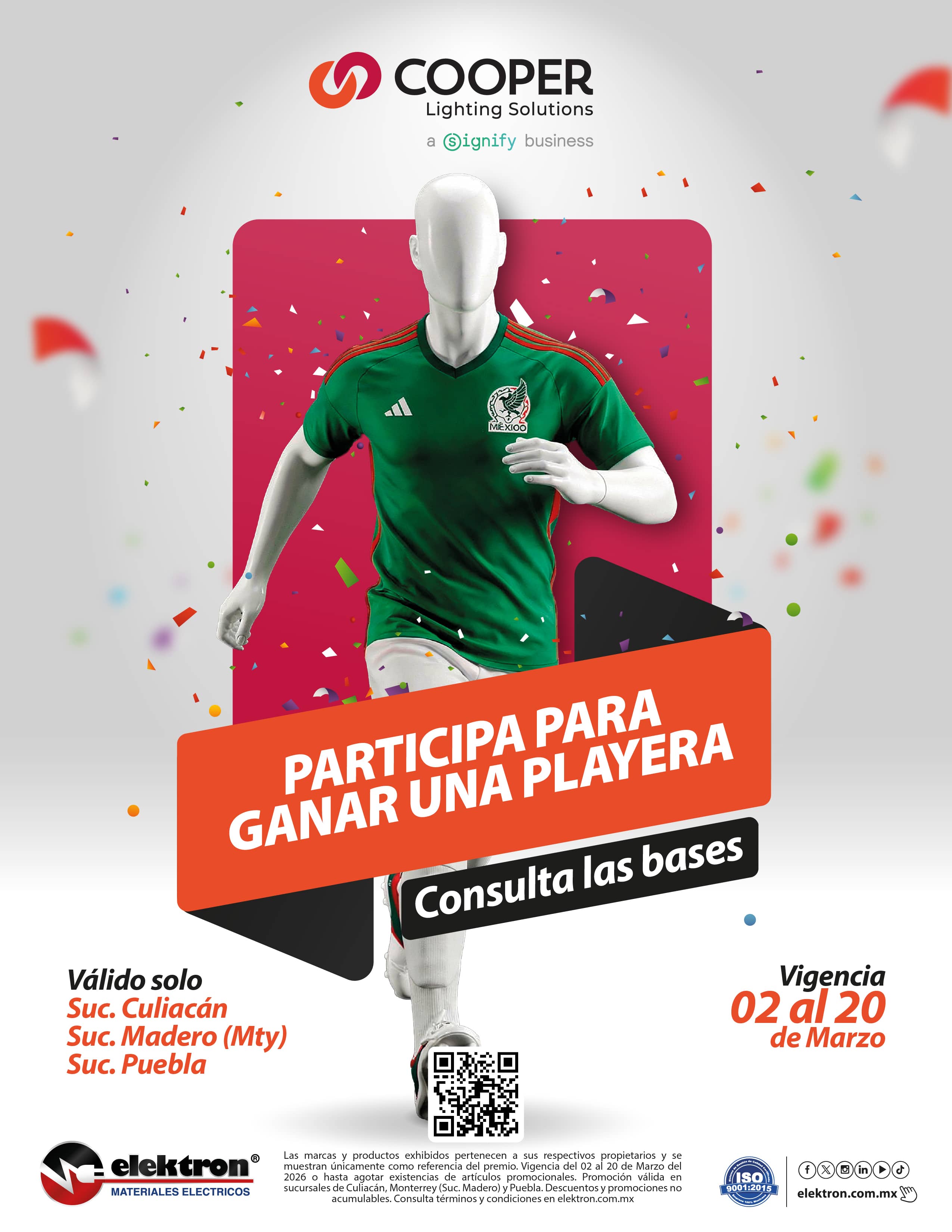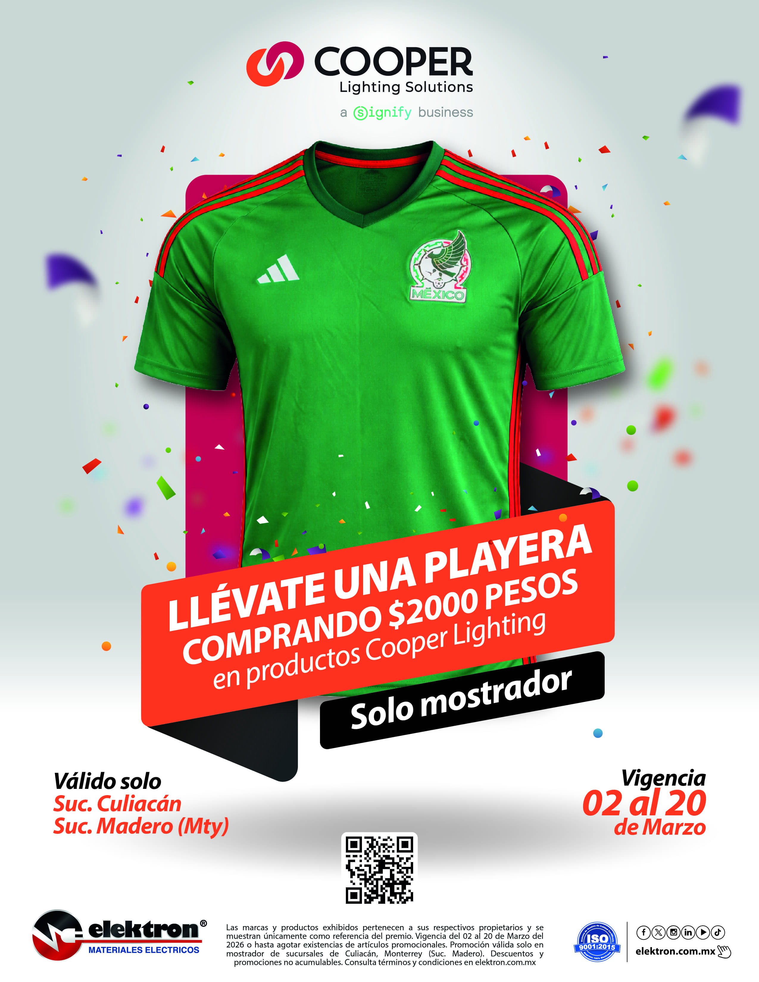 - La promoción es válida únicamente en ventas de mostrador de las tiendas seleccionadas de ELEKTRON materiales eléctricos, sucursal Culiacán y Puebla.
